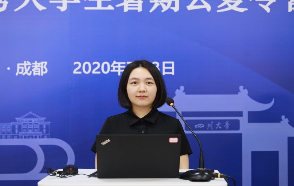 随后,太阳成官网2017级社会保障专业的本科生陈裕琪作为营员代表发言。她感谢澳门太阳成集团精心筹办了这次规模盛大的云夏令营活动,让大家在疫情特殊时期也能获得增长见识、逐梦川大的机会。她分享了自己在川大公管学院三年的学习生活,并表示老师们的关怀帮助、同学间的交往合作、兼收并蓄的文化氛围,让她产生了一种“家”的归属感。她期盼着同学们都能在夏令营中收获成长,超越自我。