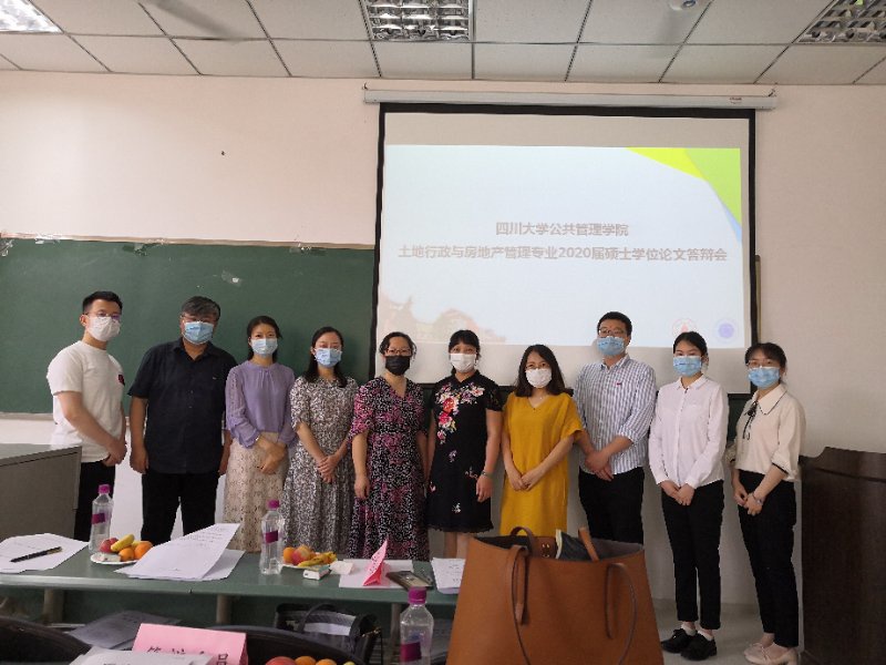 2020年5月18日,土地资源与房地产管理系2020届硕士学位论文答辩会在澳门太阳成集团214教室成功举行。四川农业大学管理学院院长傅新红教授应邀作为答辩主席,主持了本次答辩会。答辩委员会成员包括四川省社会科学院高杰副研究员、土地资源与房地产管理系刘润秋教授、杨智恒副教授、马爱慧副教授、董欢副教授。土地行政与房地产管理专业4名研究生参加了此次答辩会。
