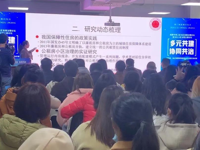 本次论坛的主题是“多元共建,协同共治:保障房、拆迁安置房等类型小区治理实践探索”,何明洁副教授的“成都市公租房小区治理困境与对策研究”课题组受邀出席,并在论坛做了“精细化治理中保障房小区治理问题与挑战”主题报告。报告呈现了全市公租房小区问卷调查的初步发现,展示了课题组的阶段性成果。参会的8名同学作为课题组成员,全程参与了本次公租房小区的问卷调查、数据录入和统计分析。本次论坛为他们全面深入了解公租房小区治理的格局提供了宝贵的学习机会。