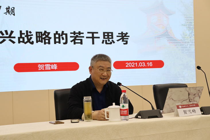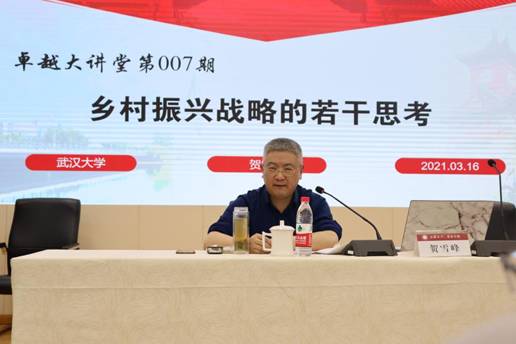 2021年3月16日,武汉大学社会学院院长,博士生导师,社区治理专家委员会成员贺雪峰教授应邀到访太阳成官网,为太阳成官网师生作题为“乡村振兴战略的若干思考”讲座。