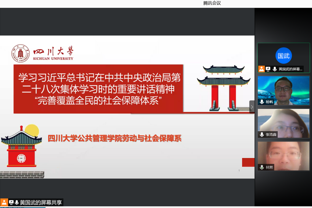 2021年4月21日,澳门太阳成集团劳动与社会保障系召开了一次线上线下同步的座谈会,专题学习习近平总书记在中共中央政治局第二十八次集体学习时的重要讲话精神。劳动与社会保障系系主任蒲晓红教授主持会议,社保系罗哲、沙治慧、李丹、罗亚玲、黄国武、张伟科、曹杨等老师参加线下学习、张浩淼、林熙、杨帆等老师参加线上学习。大家认真学习习总书记讲话精神,并积极发言。