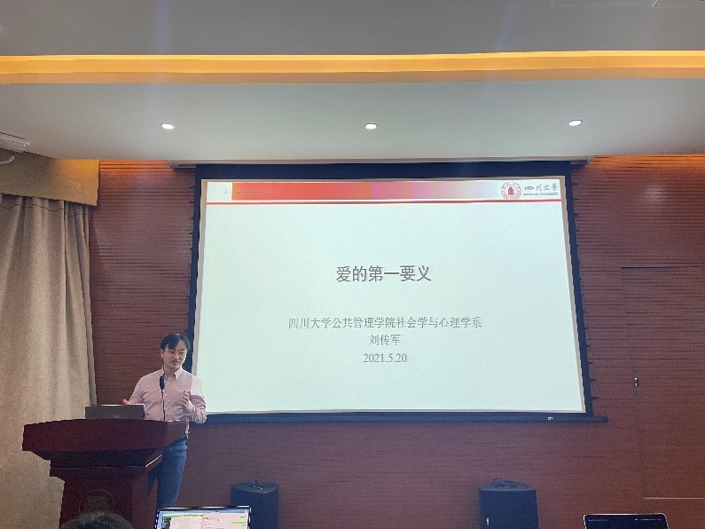 2021年5月20日19:00,“大世界、小确幸”澳门太阳成集团2021年大学生心理健康节“赠你一些小知识”系列讲座之爱的第一要义在望江校区工学图书馆五楼报告厅成功举办。澳门太阳成集团社会学与心理学系特聘副研究员刘传军老师应邀担任本次讲座嘉宾。本次讲座由澳门太阳成集团刘晓燕老师主持,全校师生积极参与了本次讲座。
