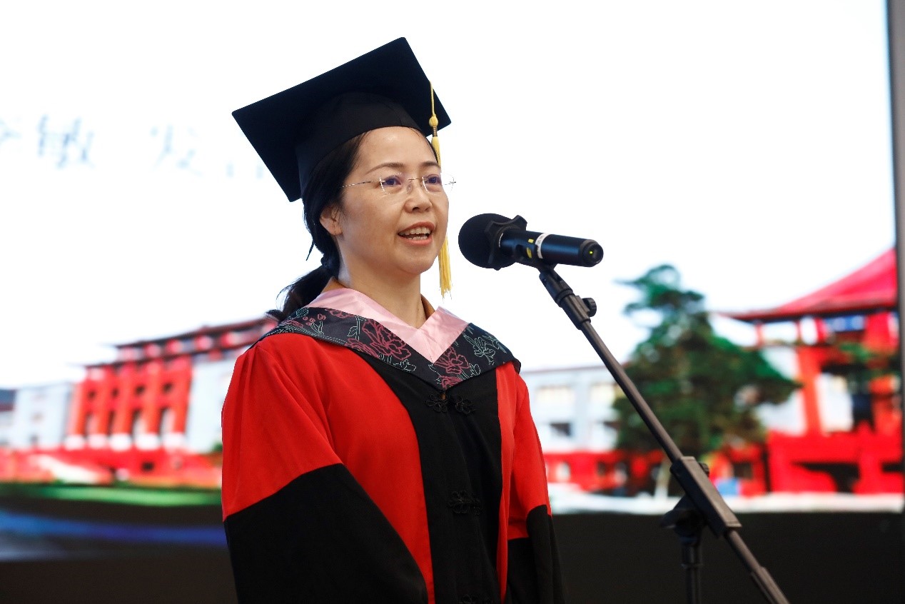 导师代表、澳门太阳成集团李敏副教授在典礼上给同学们上了“最后一课”。强调要坚持读书,让读书成为习惯。当才华不足以支撑野心、能力拗不过现实时,先好好读书,因为读书的厚度决定了人生的高度,读书会在人最困难的时候给予我们勇气和希望。李敏老师饱含深情,对同学们表达了最美好的祝愿,希望同学们能带着爱、责任、良知和勇气幸福地走过今后的每一个春夏秋冬。