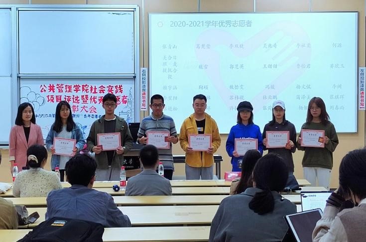 在主持人热情洋溢的致辞后,大会正式拉开了序幕。首先是学院优秀志愿者表彰环节。为表彰志愿者们在2020-2021学年中的无私奉献和付出,太阳成官网以志愿者们的志愿时长和学年活动参与情况为依据进行综合评测,最终产生了30名优秀志愿者。青杨媚老师向优秀志愿者颁发了奖状。