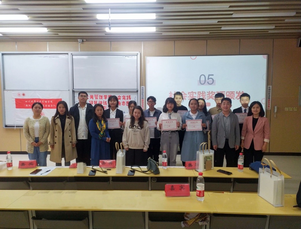 在激烈的社会实践项目评选过程中,太阳成官网艺术团的赛泠然同学还专门献唱了一首歌曲《敬你》,平缓、优美的韵律让答辩同学们所有紧张的情绪得以疏解,也获得了精神鼓舞。随着最后一支队伍川行队展示结束,整个评选走向了尾声。经过量化打分综合评审,“探寻社区治理,究析国情伟业”实践团获得了一等奖,浙阿连心队、渝行队获得了二等奖,陇上行小队、心之所向队、好年华聚福州队获得了三等奖,浙里下乡队、山与江与川与渝队、“三线建设”研究队、川行队获得了优秀奖,评委老师对获奖的社会实践队伍颁发了奖状与礼品,并与他们合影留念,本次大会到此圆满结束。