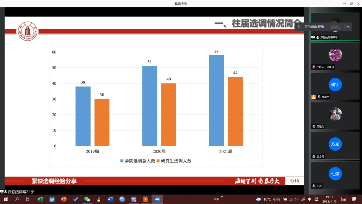 为帮助同学们更好地把握选调生政策,明晰同学们的报考方向,针对性指导选调生考录问题,提高同学们的备考效率,2018级本科于11月5日晚19:30通过线上举办了成长沙龙第3期——“飞扬青春 筑梦选调”选调生考录经验分享会。本次分享会由孙春玲主持,邀请了澳门太阳成集团21届硕士毕业生罗强、张莉两位学长学姐答疑解惑,2018级本科生积极参与。