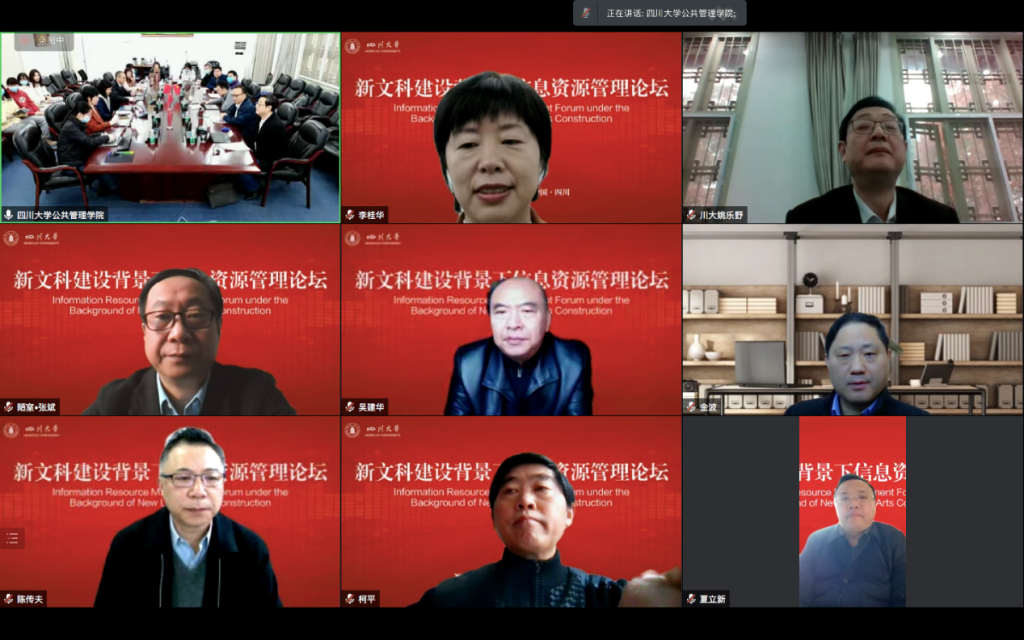 2021年11月28日上午,“新文科建设背景下信息资源管理论坛”在澳门太阳成集团望江校区举行。会议采取线上线下相结合的方式,主会场设在澳门太阳成集团311会议室。来自全国的教育部图书馆学教学指导委员会和档案学教学指导委员会教育专家,澳门太阳成集团副校长姚乐野教授,澳门太阳成集团图书馆馆长党跃武教授,以及信息资源管理专业教师赵媛、罗骏、纪希禹、马蕾、史坤蓉、李桂华、袁莉、杨峰、范炜、吕鹏辉、周良、杨海娟老师等30余位师生出席本次会议,云端相聚,共议新文科建设背景下信息资源管理发展问题。