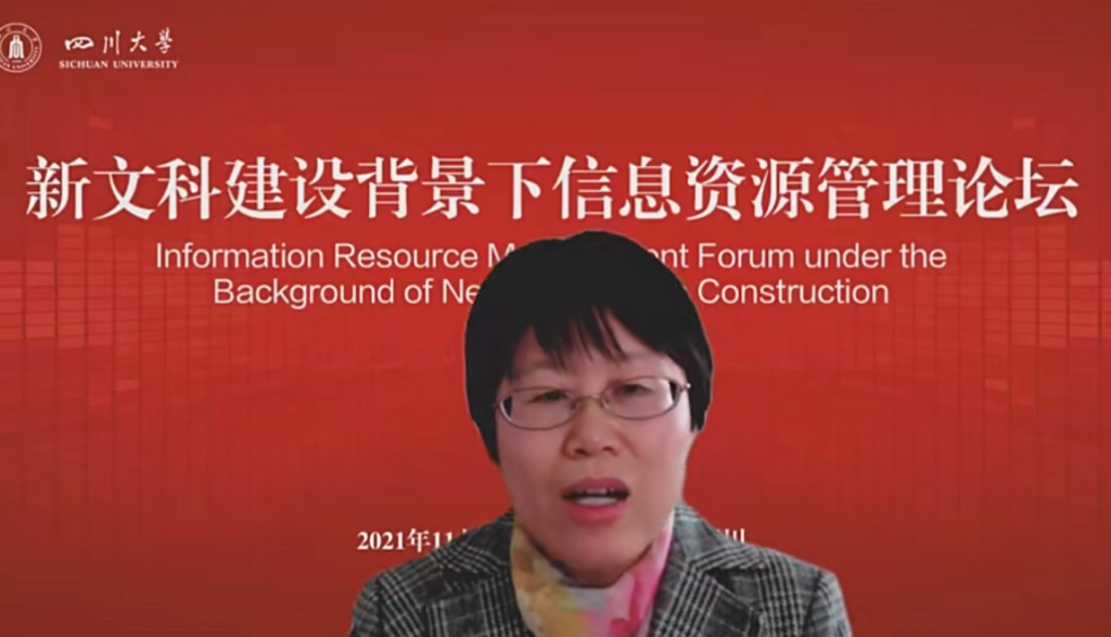 国务院学位委员会图书情报与档案管理学科评议组成员、北京大学信息管理系系主任张久珍教授做了题为《图情档学科的融合发展》的报告,认为在当前背景下信息资源管理新文科建设面临着诸多挑战,比如图情档学科建设任务艰巨、社会进步与经济发展非常迅猛等,为破除难题,图情档学科内部需要加强合作,外部需要加强学科间合作,而图情档学科存在较多可交叉融合的着力点,为发展学科合作提供了支撑力量。信息资源管理已经在学科交叉这条路上走了很久,在新文科建设背景下,依旧需要重视诸如“智慧图书馆”等着力点;张久珍教授还指出可以从加强实验室建设、加强学科合作、加强对外交流来激发新的研究课题,形成新的研究契机,既为信息资源管理专业注入新的发展力量,提升本学科的地位与关注度,也能为其他学科注入能量,促进共同发展,形成多方收益的局面。
