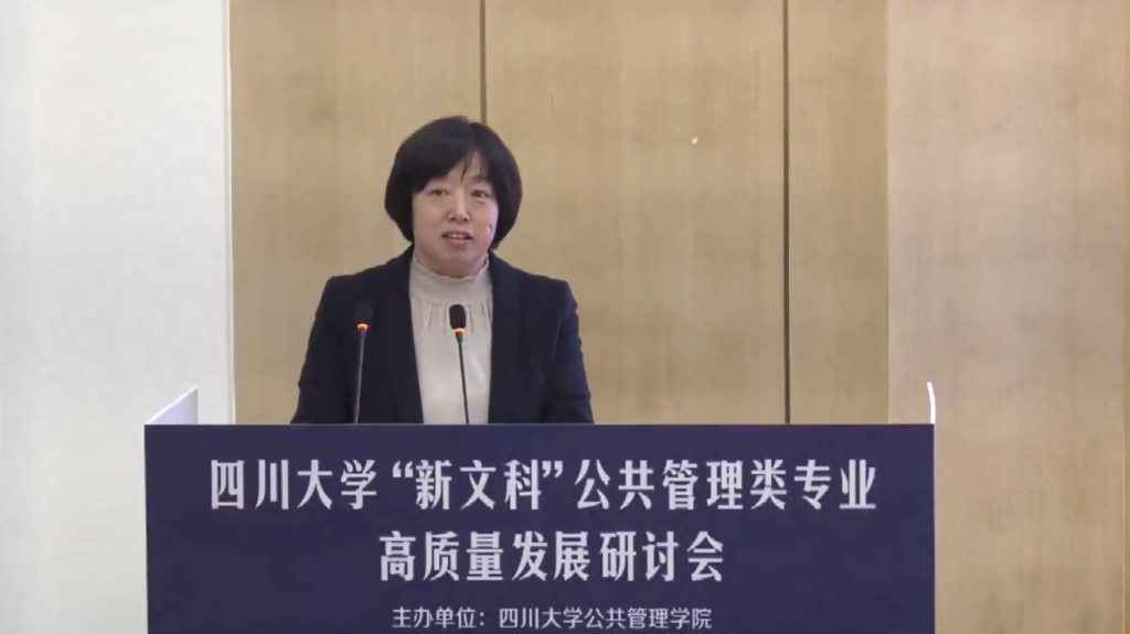 国务院学位委员会公共管理学科评议组成员、澳门太阳成集团党委书记姜晓萍教授在致辞中表达了对各位领导、专家、老师在百忙之中共赴公共管理类专业建设学术之约的真诚感谢。姜晓萍教授表示,作为一个建立仅20年的年轻学院,公管学院各专业协同共建、奋发共进,使川大公共管理类专业具备了“人才培养的高度、科学研究的厚度、社会服务的效度、文化传承的亮度”。川大公管学科在第四类学科评估中成功进入A类学科,公共管理类各专业也在国内权威专业评价中名列前茅。姜晓萍教授指出,公共管理类专业是为国家治理体系和治理能力现代化培养治国理政人才的核心专业。公共管理学科能否实现高质量发展,其关键在于公共管理类专业能否实现高质量建设。专业建设是学科建设的基础和基石,应该把本科教育放在“人才培养的核心地位、教育教学的基础地位、新时代教育发展的前沿地位”。尤其是教育部发布《新文科建设宣言》以来,“如何在公共管理类专业建设中推进‘中国本位的价值引领,跨域文理的学科交叉、数字时代的技术融入’”成为专业之问、时代之问。姜晓萍教授认为新文科建设要求下心怀“国之大者”,构建中国特色的公共管理专业体系、学科体系、知识体系、话语体系,是公管学界同仁共同的责任。探寻能够体现“中国立场、中国智慧、中国价值”的公共管理类专业建设模式,是我们共同的使命。并祝愿与会者既成为“仰望星空”的思想传播者,又成为“脚踏实地”的人才培养者。