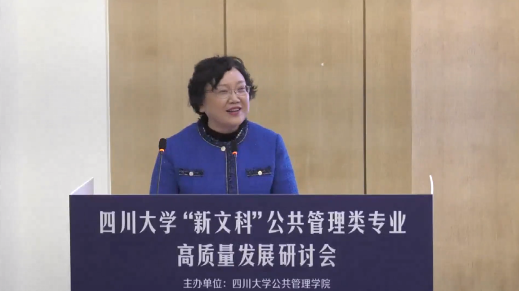 教育部公共管理类教学指导委员会秘书长、浙江工商大学校长郁建兴教授在致辞中,从产业革命对人才需求、对高等教育的交互影响出发,指出数字时代对我们的高等教育、高等教育的专业建设,以及学科建设、学术体系等等,都提出了前所未有的要求。郁建兴教授指出新文科的新本质在于创新。新文科的高度体现在要求学科体系、学术体系、话语体系都要具有中国气派和中国智慧。新文科的硬度则体现推进各个专业和理工医等学科的交叉融合。而新文科的黏度则指新文科需要服务、建设甚至引领经济社会发展。新文科还需要具有广度,需要在更加广泛的范围内,结合各级党委、政府来开展。郁建兴教授指出川大作为我国公共管理学科的西部重镇,能够勇担使命,专门开会研讨新文科公共管理类的专业建设,堪称领风气之先。