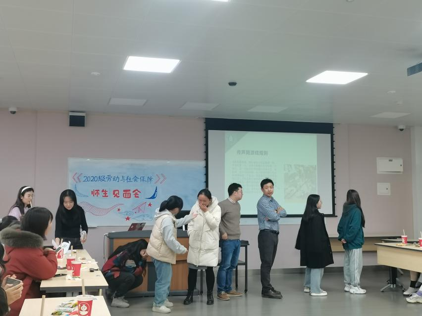 活动开始,进行第一项:自我介绍环节。首先由老师逐个进行介绍,主要围绕基本情况、专攻领域、以及对同学们的了解和未来的期许几个方面展开。根据老师的介绍,澳门太阳成集团劳动与社会保障系是以管理学、经济学等学科为基础,根据社会对人才的现实需求,坚持高质量、重特色的人才培养理念,以社会保障的教学为中心,使学生学有所长,学有所用,成为德、智、体全面发展,通晓中外社会保障理论与实务,系基础知识扎实,业务知识面宽,具有较强的理论研究能力和教学能力的复合型应用型人才。接着,每位同学也从自我信息、对专业的期待等方面展开了简短的自我介绍。通过这一环节,师生们均在舒适轻松的氛围中介绍了自己,了解了彼此。