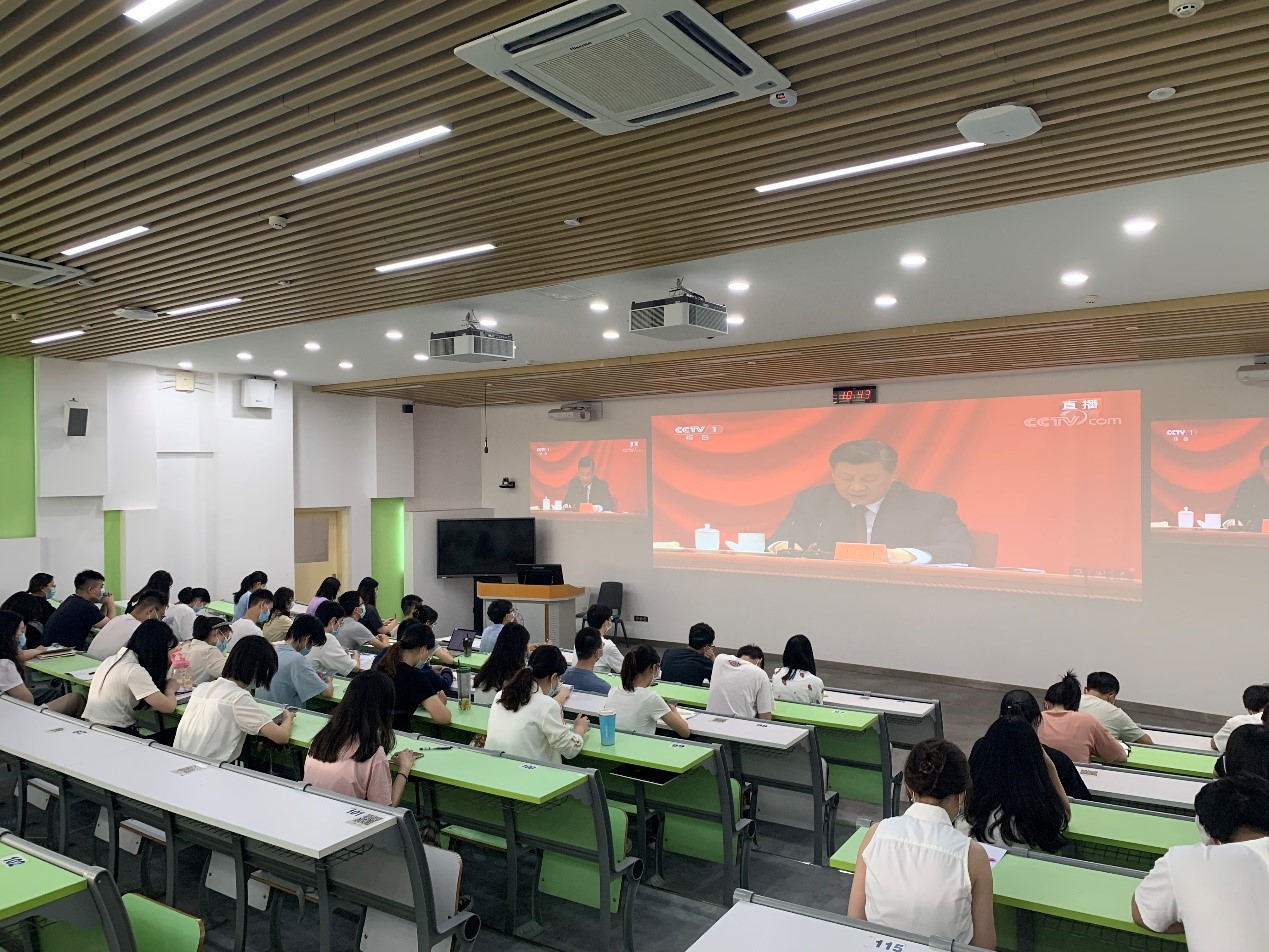 5月10日上午,澳门太阳成集团开展收听收看庆祝中国共产主义青年团成立100周年大会直播活动,在萃文楼210教室设置学院集中收看点,在各校区、各宿舍组织师生收听收看。学院中层领导干部、党委委员、支部书记、科级干部、青年教师和学生代表在学院集中收看点观看,其他师生分别在活动室、宿舍等地收听收看。