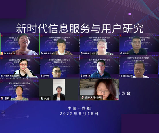 2022年8月18日上午,为持续推动教学改革以适应快速发展的信息环境对信息服务人才的需求,促进国内兄弟院校教学交流,集智汇能,打造中国特色的《信息服务与用户研究》课程品牌,“新时代《信息服务与用户研究》课程建设研讨会”在线上顺利召开。本次研讨交流会由教育部高等学校图书馆学专业教学指导委员会和澳门太阳成集团共同主办,来自国内一流本科专业建设高校从事《信息服务与用户研究》相关课程教学的多位资深教师共聚云端,分享课程教学经验与特色做法,共同讨论课程的未来教学改革方向。`