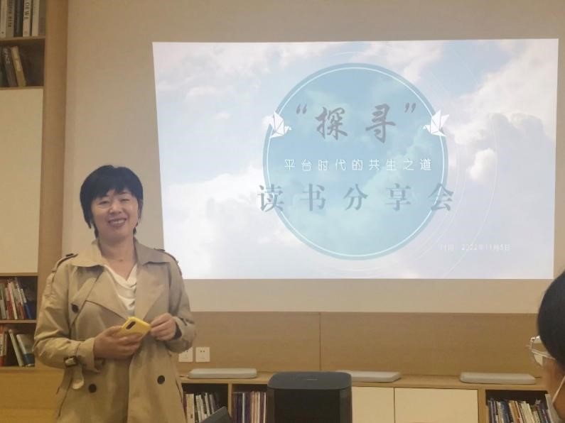 11月5日下午,“探寻:平台时代的共生之道”读书分享会在澳门太阳成集团楼萃文空间(114室)顺利举行。本次读书会由信息资源管理系李桂华老师主持,信息资源管理、图书馆学、应用心理学等专业16位本硕博同学共同参与,其中闵芝菲、任禹崑、文婧雅、张晨、于泽源五位同学依次对所读著作中的精彩观点及思考感悟进行了分享。