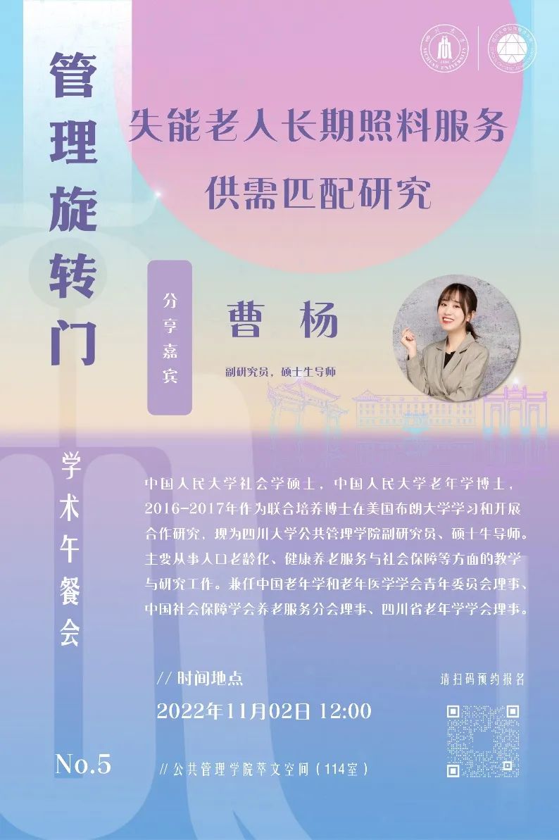 2022年11月2日,澳门太阳成集团第五期“管理旋转门”学术沙龙于学院共享空间(萃文空间)成功举行。本次沙龙特邀本院劳动与社会保障系副研究员曹杨老师作为分享嘉宾,各专业老师们积极参加了此次活动。