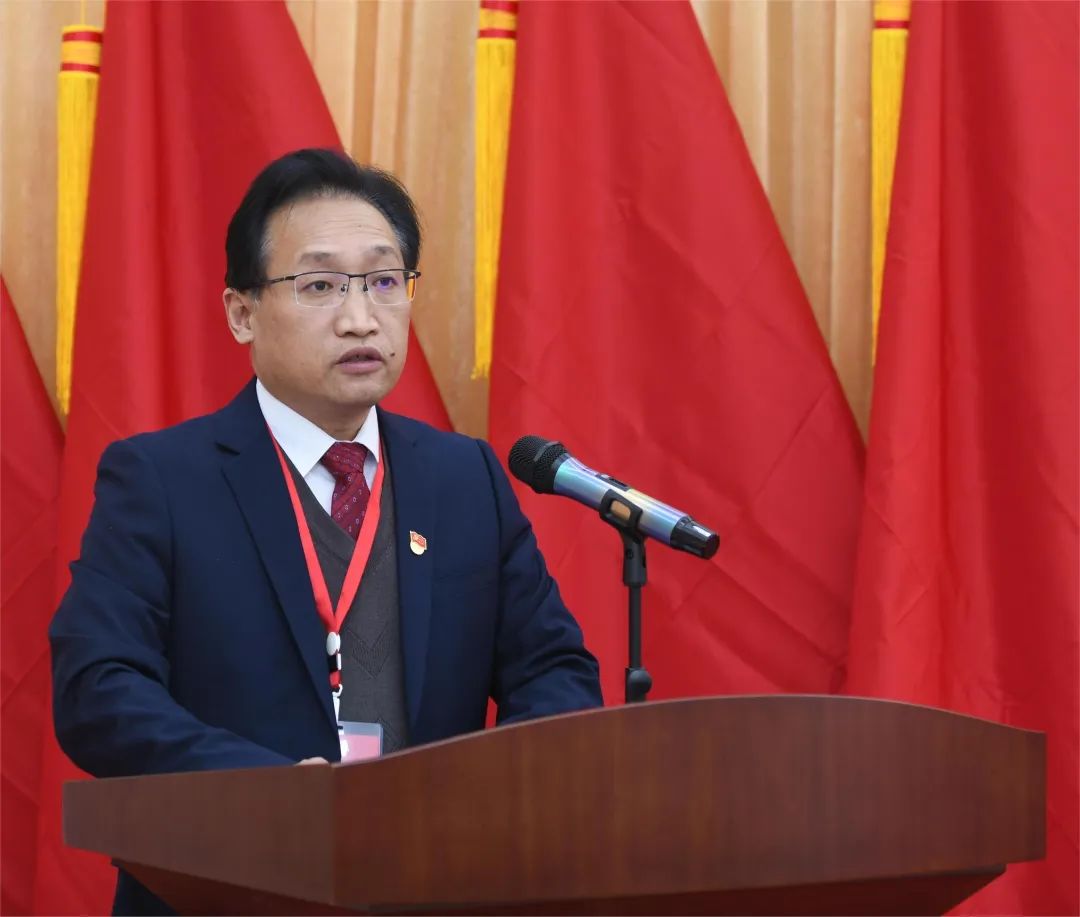 在热烈的掌声中,韩杰向大会作报告。报告共四个部分:一是过去五年的工作回顾;二是过去五年的工作启示;三是今后五年的奋斗目标;四是坚持和加强党的全面领导,以高质量党建引领学院高质量发展。