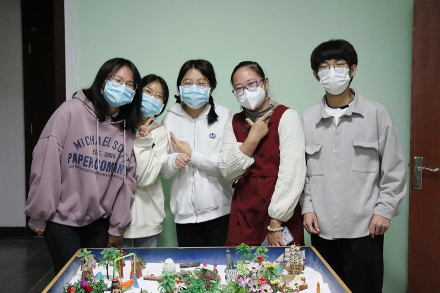 在体验沙盘游戏时,同组同学根据内心真实想法在沙盘中设计出“理想家园”,通过摆放沙具和塑造沙箱内的沙子,创建出与个体内在相对应的理想世界,并在组内进行了分享和讨论。