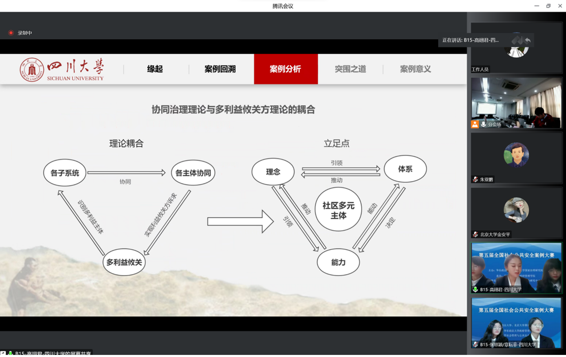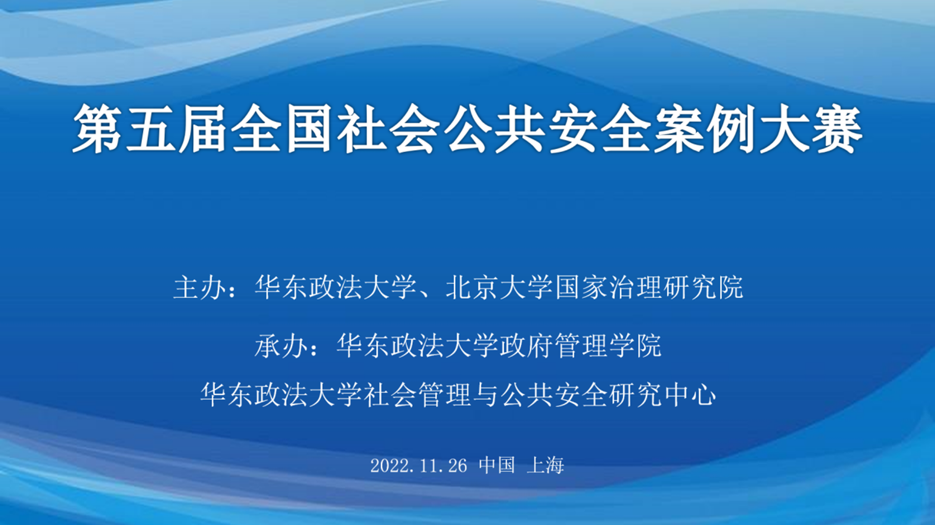 2022年11月26日上午,由华东政法大学、北京大学国家治理研究院主办、华东政法大学政府管理学院与华东政法大学社会管理与公共安全研究中心承办的“第五届全国社会公共安全案例大赛”决赛在云端举行,太阳成官网四支参赛队伍在决赛中发挥出色,分获大赛一等奖、二等奖和优胜奖。继前两届获得一等奖后,太阳成官网学子再次获得该项大赛最高奖。