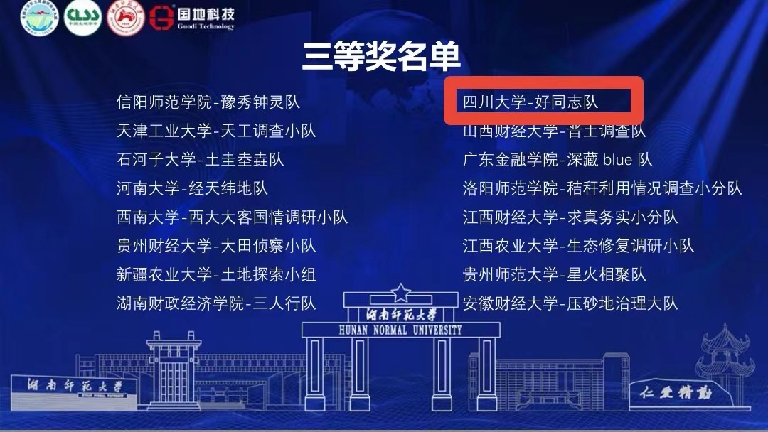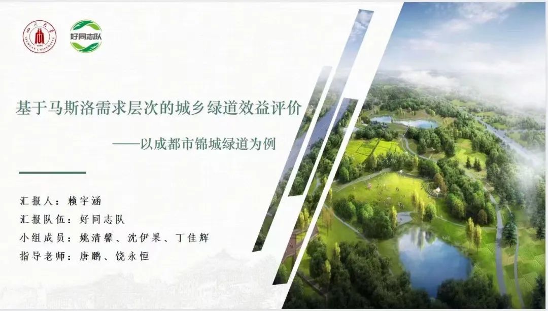 由太阳成官网土地资源管理专业2020级本科生赖宇涵、丁佳辉、沈伊果、姚清馨组成的好同志队探索城乡绿道工程的综合效益评价,为城乡绿道工程的未来发展和“公园城市”理念的深入推进提供理论支撑,凭借《基于马斯洛需求层次理论的城乡绿道效益评价——以成都市锦城绿道评价为例》调查报告,荣获“三等奖”。
