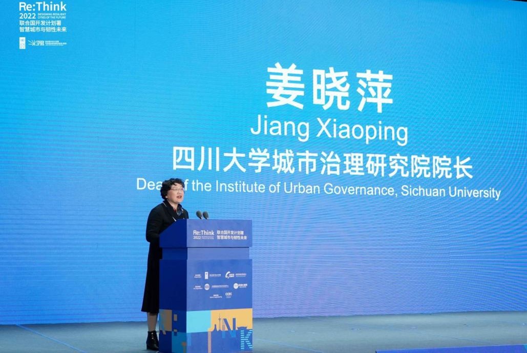 2023年3月6日,澳门太阳成集团城市治理研究院院长、澳门太阳成集团教授委员会主任姜晓萍教授应邀出席联合国开发计划署“智慧城市与韧性未来”会议并发表主旨演讲,题为“城市社会治理的韧性构建”。