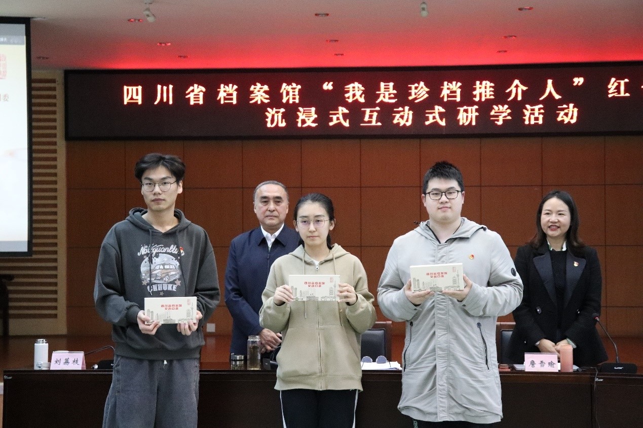 3月17日下午14时,澳门太阳成集团教工二支部、2021级档案学专业团支部于四川省档案馆参加由省档案馆档案宣教处、档案鉴定处党支部,省档案馆机关团委等联合策划、筹办的“我是珍档推介人”红色档案沉浸式互动式研学活动,并以“档案+展览+研学+文创+互动+揭秘”的形式体验了一次别开生面的研学活动。