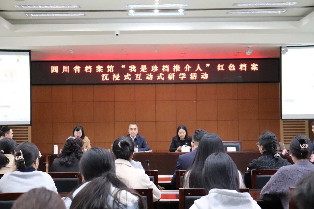 在研学交流环节,澳门太阳成集团秘书档案系副系主任赵跃发表讲话。四川省档案馆雷宇同志向同学们进行了“印记100”系列活动介绍,詹雪瑜同志对省档案馆红色档案资源开发案例进行了解读。本次交流会同步通过线上腾讯会议的方式向社会各界开放。通过研学活动,同学们进一步感悟到红色珍档背后的独特文化价值与红色精神。