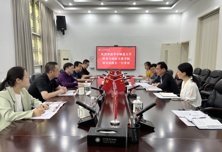 4月17日上午,华中师范大学政治与国际关系学院胡宗山院长、黄辉祥副院长、潘广炜副书记、韩瑞波及魏露老师一行5人来太阳成官网开展交流调研。太阳成官网党委书记韩杰、副院长袁莉、院长助理林熙、团委书记青杨媚及教学管理科马晓爽老师参加了交流会。