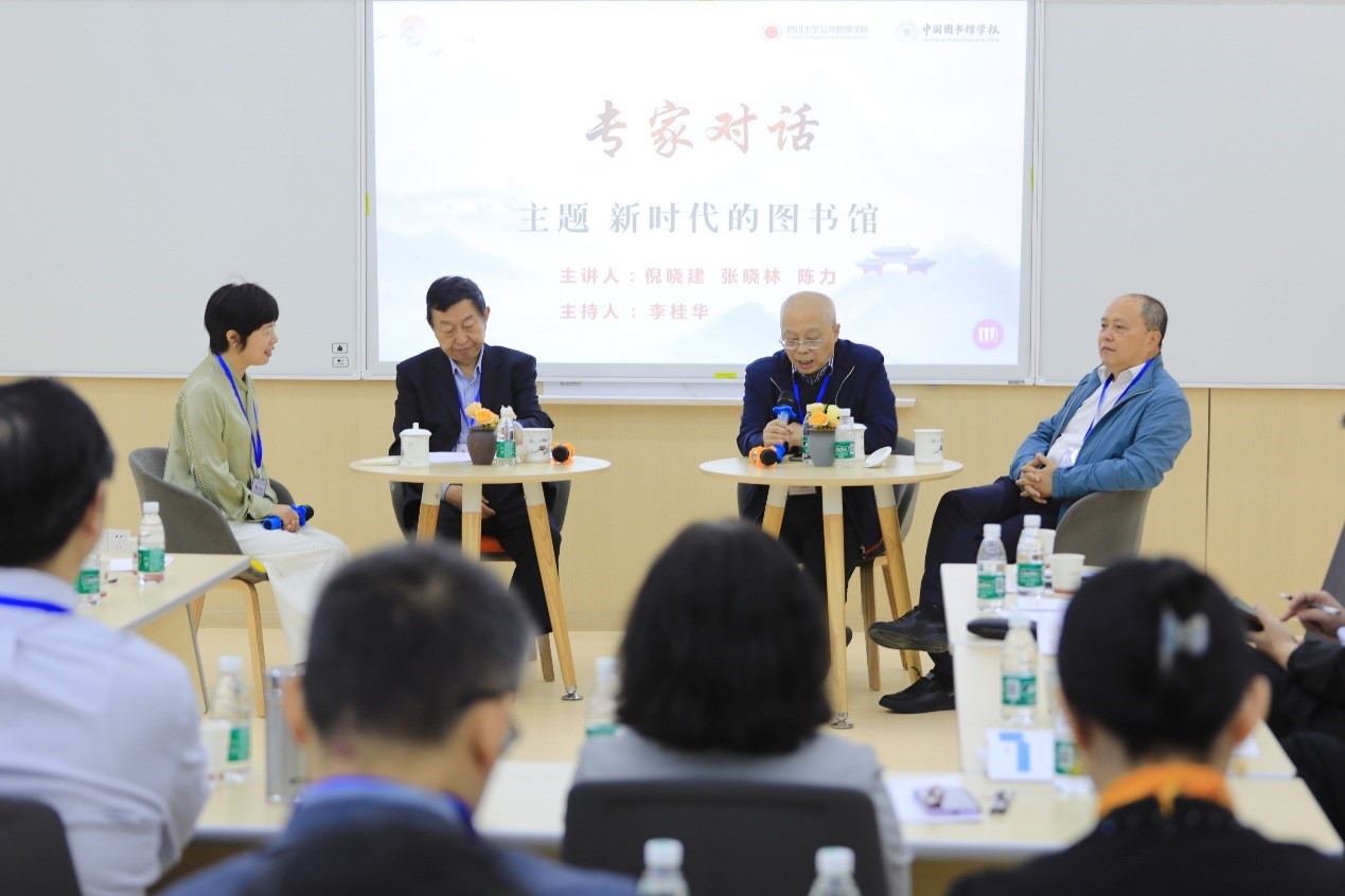 第一场专家对话以“新时代的图书馆”为主题,由首都图书馆原馆长倪晓建教授,中国科学院文献情报中心原主任、上海科技大学图书信息中心张晓林教授,国家图书馆原常务副馆长、澳门太阳成集团历史文化学院陈力教授共同开启,澳门太阳成集团李桂华教授主持。陈力教授针对图书馆学多年的发展变化及其对推动图书馆事业发展所发挥的作用,指出图书馆学领域存在理论研究落后于实践、理论和实践脱节两个问题;面对新技术变革,图书馆学领域需要思考怎样将图书馆传统优势与技术进步相结合,以及怎样进一步发展自身,并指出图书馆在未来变革中应扮演重要参与者的角色。张晓林教授指出图书馆现有困境实为“自困”,多倾听业界和学界的多样化声音是进步的基础;创新是发展的题中应有之义,而理论知识常青的根本在于找到实践这个“根”,要避免脱实向虚倾向和功利性学术导向。倪晓建教授从20世纪70年代以来图书馆历经挑战的演变谈起,从技术、用户素养和图书馆制度建设三个角度总结图书馆发展历程,指出公共文化空间建设、文旅融合、高品质和高质量的服务可能孕育着图书馆的发展机遇。