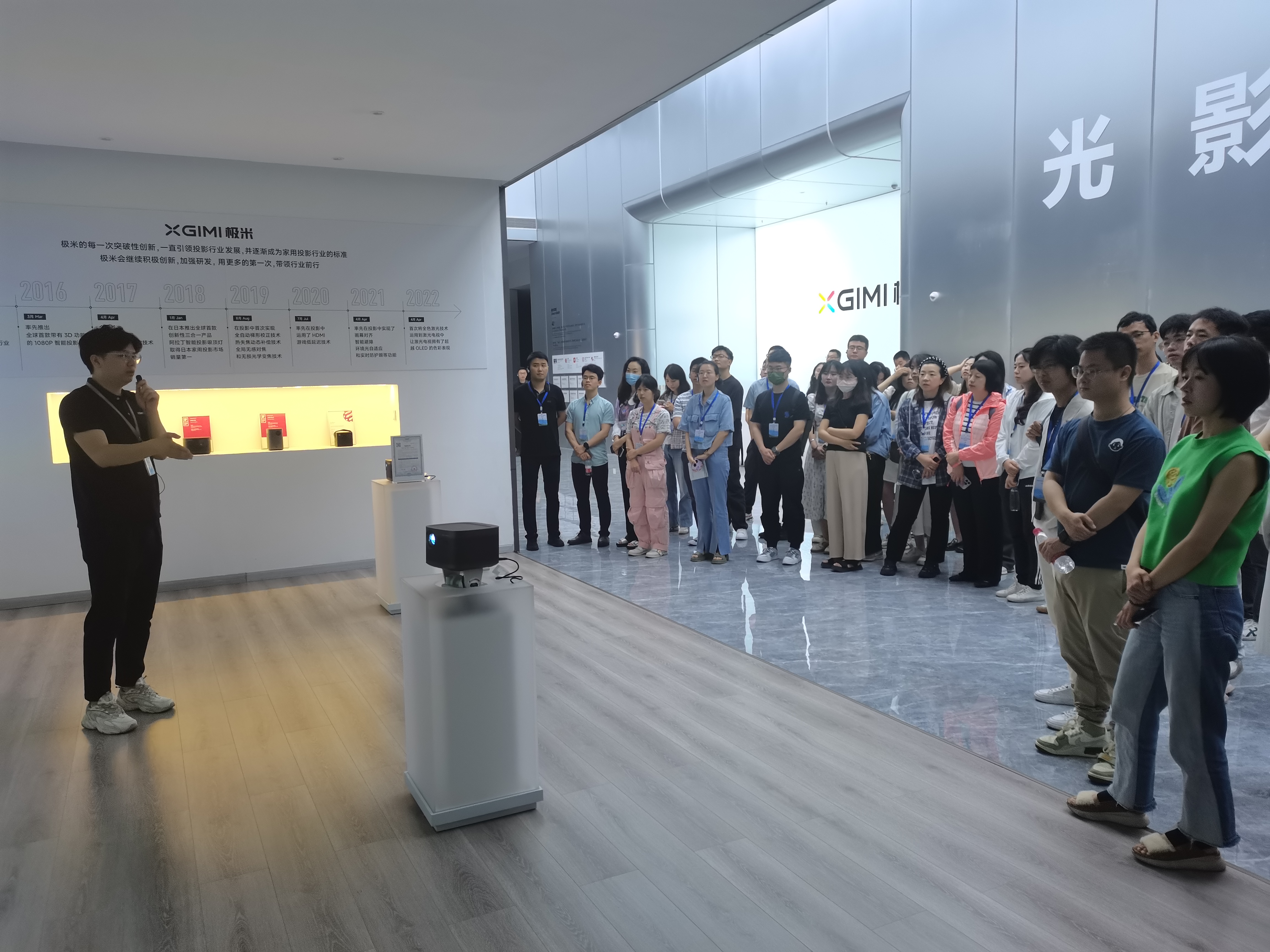 追随习近平总书记的脚步,师生们来到极米光电有限公司,参观企业宣传片和荣誉墙,体验极米光电的经典产品功能,并到沉浸式体验区和场景体验间进行参观。在四川时代新能源科技有限公司,师生们从高处鸟瞰宁德时代落户三江新区的场址。在三江新区规划展览馆,师生们了解宜宾作为“长江首城•中国酒都”的总体情况、三江新区的设立背景和交通优势,俯瞰新区沙盘,观看宣传片,参观三江新区布局的新兴产业的产品,包括新能源汽车、动力电池等。