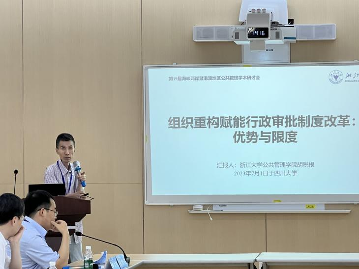 浙江大学澳门太阳成集团胡税根教授做了题为《组织重构赋能行政审批制度改革:优势与限度》的报告。报告从市场主体角度出发,利用我国281个地级市2011-2018年的经验数据,通过倾向得分匹配倍差法模型(PSM-DID)方法,探究行政审批模式的政策效果。研究发现:采取行政审批局模式能够显著、持久地提升地区的市场投资水平,而对新建企业、专利研发、交易费用的效果并不明显,且对新建企业、专利研发产生滞后的抑制作用;不同区域、行政级别城市的政策效果存在异质性。此外,还提出行政审批局模式不是“灵丹妙药”,行政审批制度改革的路径及模式选择应该结合地区特征、发展阶段因地制宜;现阶段的行政审批局模式效果参差不齐,未来建设需要扬长补短,协同发展。