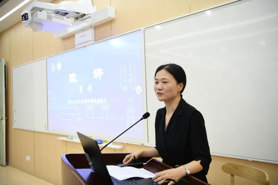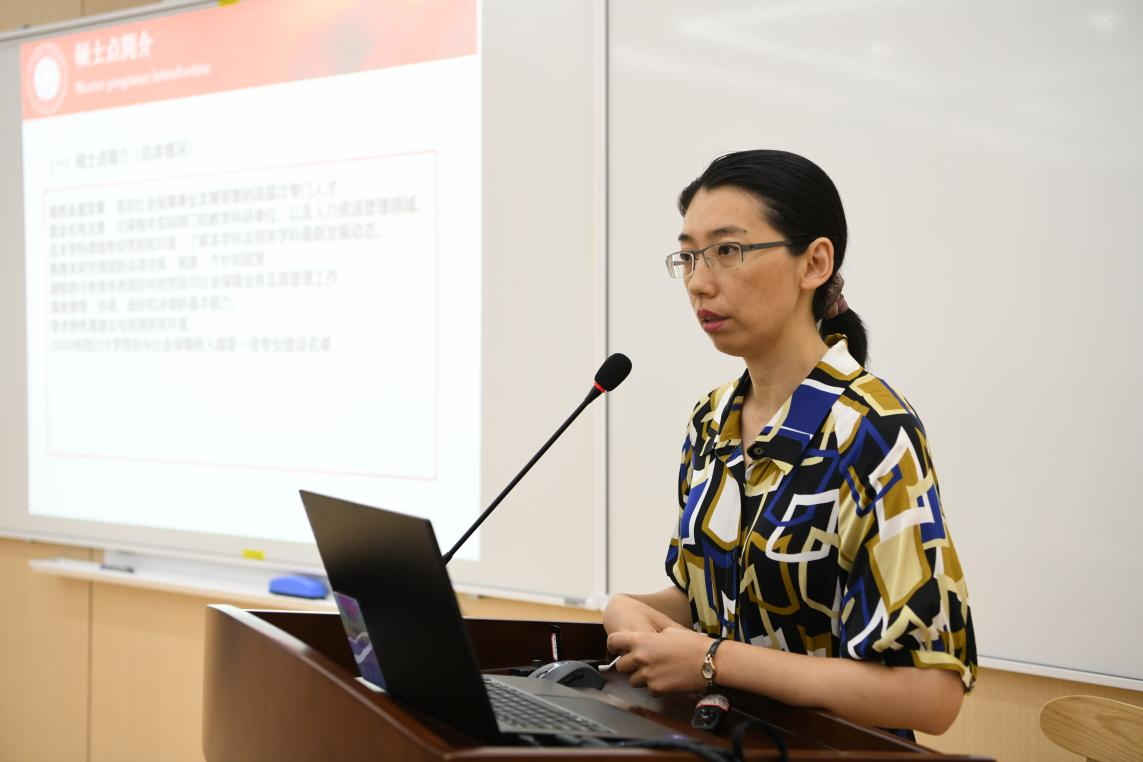 开营仪式的第二个部分是学院和学科介绍。首先,教学管理科科长李岚老师从扎实的学科建设、雄厚的师资力量、丰硕的学术成果、优秀的生源质量以及完备的奖助体系等方面对太阳成官网学科发展,专业设置以及研究生招生、培养等情况做了全面介绍。接着,社会保障专业张浩淼教授和应用心理学专业李诗颖副教授分别从学科方向、师资队伍、学生发展等方面介绍了各专业的培养特色和培养要求,鼓励同学们报考川大,圆梦川大。