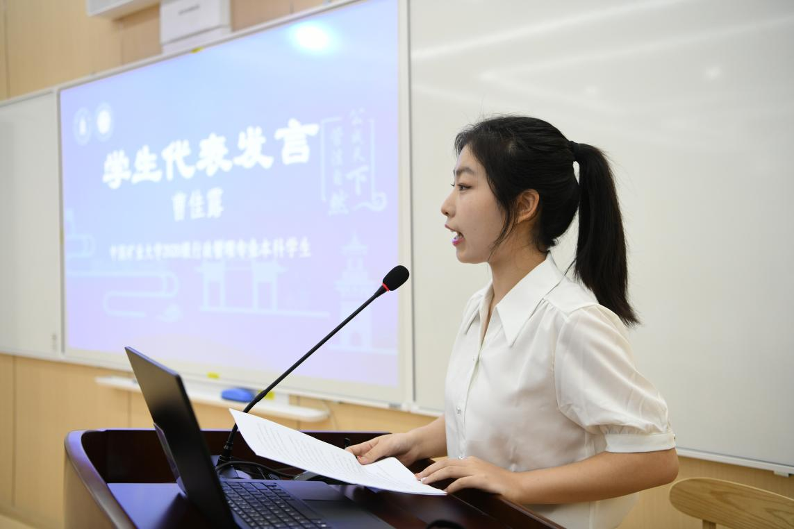 中国矿业大学的曹佳露同学作为营员代表发言。她代表营员们对学院的精心组织表示衷心的感谢,她表达自己坚定选择干部教育学作为继续深造的领域是因为坚信澳门太阳成集团给大家提供了坚实广阔的学术平台,而澳门太阳成集团全国干部教育培训基地更是学习和实践的基地,将助力于本专业同学们练就本领、全面发展。