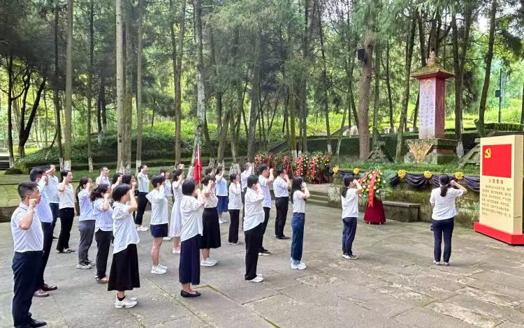 党员同志们怀着崇敬的心情瞻仰了全国最大、唯一由红军为牺牲战友修建的陵园——川陕革命根据地红军烈士陵园。那一排排整齐的墓碑上均无烈士姓名,唯有中央镌刻着一颗红星,象征着无数革命先烈对党和人民的一片赤诚。