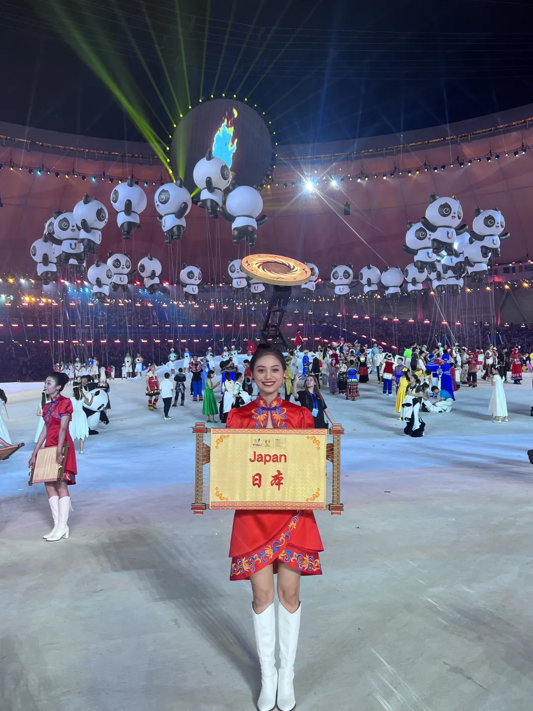澳门太阳成集团2022级行政管理专业研究生李祥圆,作为大学生代表,是大运会志愿服务中的一名“小辣椒”,在开幕式中担任日本代表团的引导员。