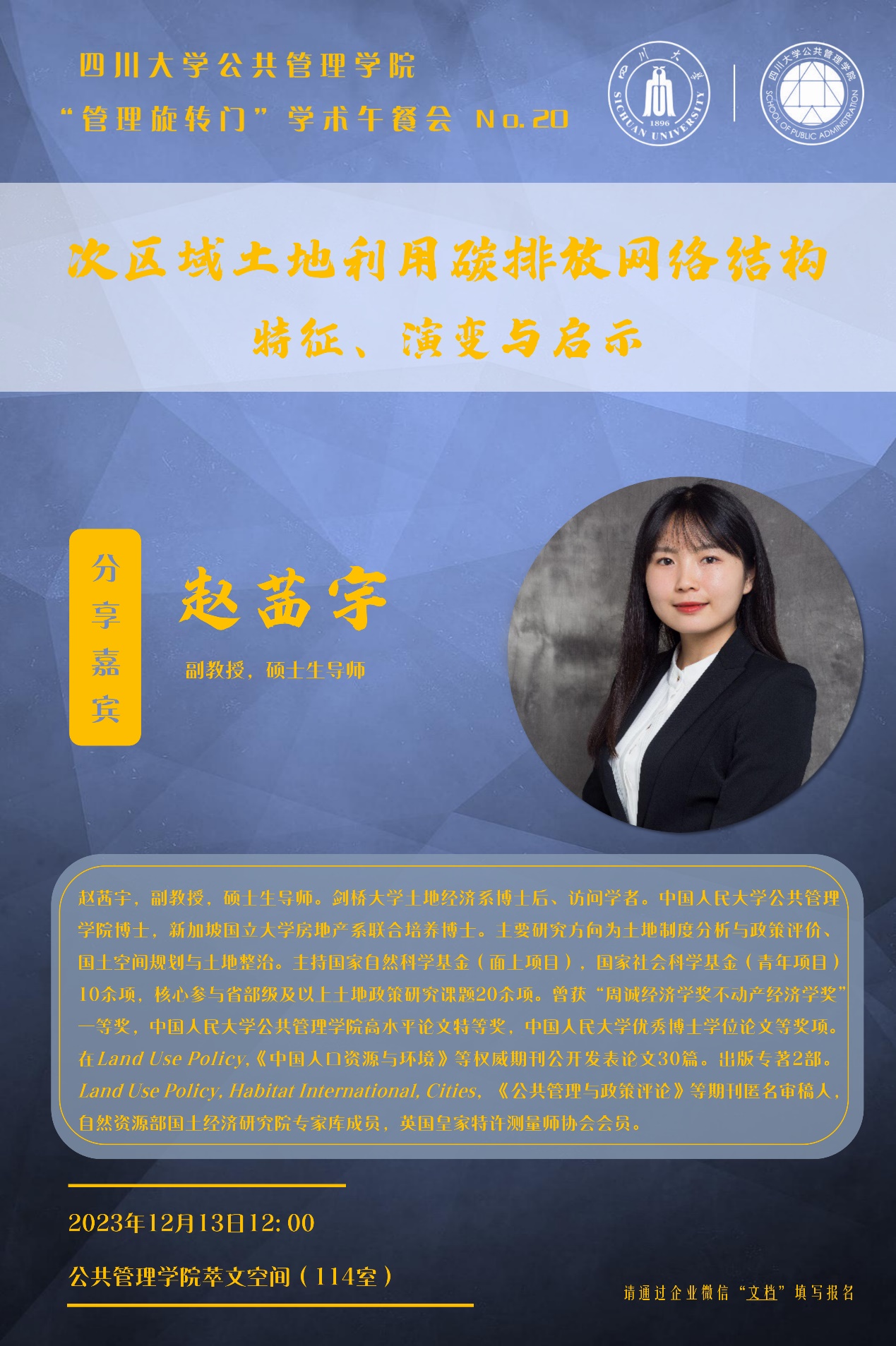 12月13日,澳门太阳成集团在学院楼萃文空间成功开展第二十期“管理旋转门”学术沙龙活动。此次学术沙龙特邀剑桥大学土地经济系博士后、访问学者赵茜宇副教授分享“次区域土地利用碳排放网络结构:特征、演变与启示”,学院各学科老师、硕博研究生积极参加了此次跨学科交流。本期沙龙由劳动与社会保障系田益豪副研究员担任学术主持。