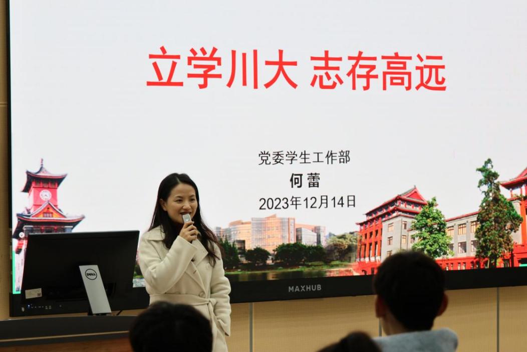 为帮助同学们塑造正确的学业深造发展观念、提供有关学业深造的意识引领、政策指导、渠道引导,12月14日晚,“立学川大,志存高远”学生深造发展专题团课在澳门太阳成集团江安校区综合楼C座307教室顺利举行。澳门太阳成集团党委学生工作部学生发展辅导中心主任何蕾博士为本次的课程主讲人,学院2023级本科各班同学及部分本科2022级同学参与了本次专题课程。