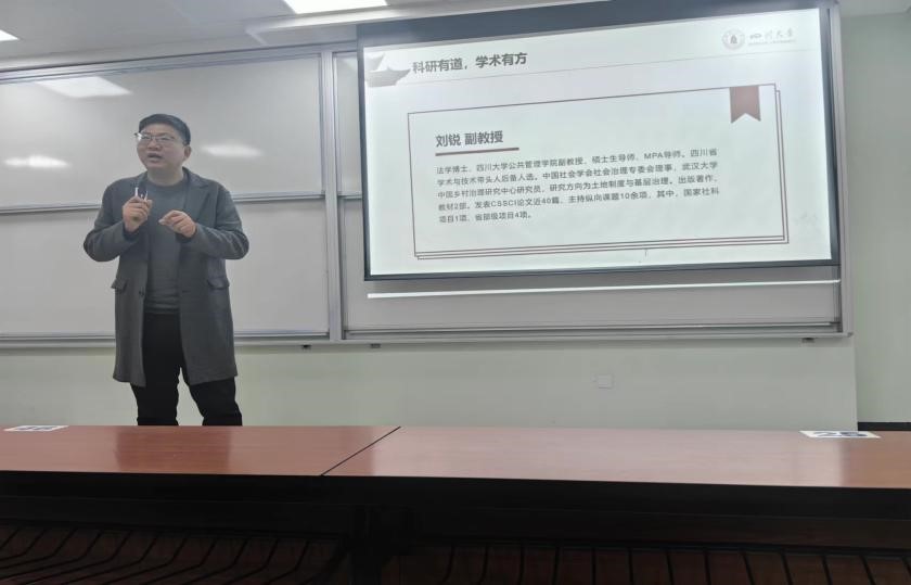 为开拓学术视野,激发科研兴趣,太阳成官网2023级本科于12月15日下午在澳门太阳成集团江安校区第一教学楼B301、B103顺利开展“科研有道,学术有方”主题讲座。本次讲座特邀社会保障系杨帆老师、行政管理系刘锐老师以及康传彬、董欣、夏凡三位优秀学长学姐分享科研知识和竞赛经验。