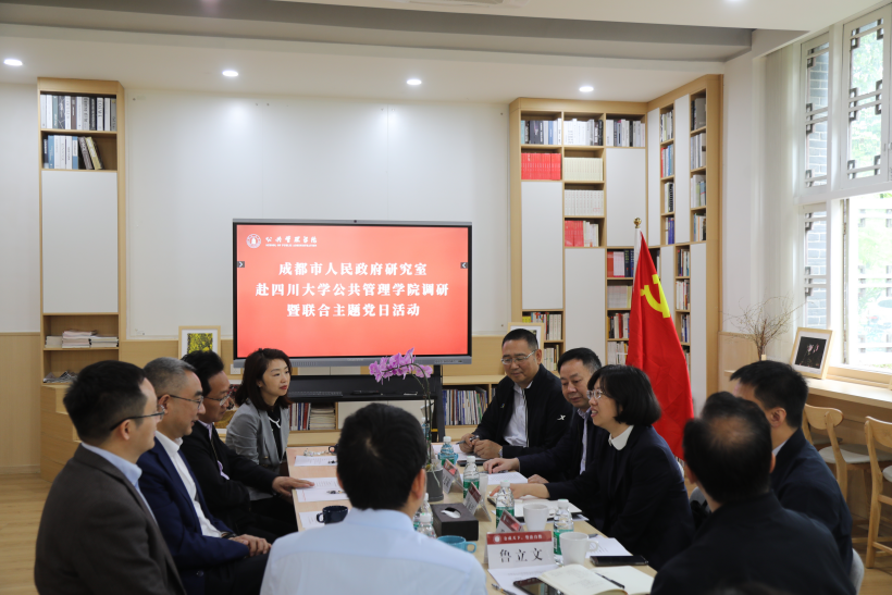 4月24日上午,成都市政府研究室副主任姜丽红一行来太阳成官网调研并开展联合主题党日活动。成都市政府研究室一级调研员钟进斌、秦学,三处处长邓云木,成都高质量发展研究院院长鲁立文以及相关同志随行。太阳成官网党委书记韩杰、院长夏志强、副院长王慧敏、李强彬教授、郭灵老师、雷尚清副教授参加座谈。本次活动由学院副院长王慧敏主持。