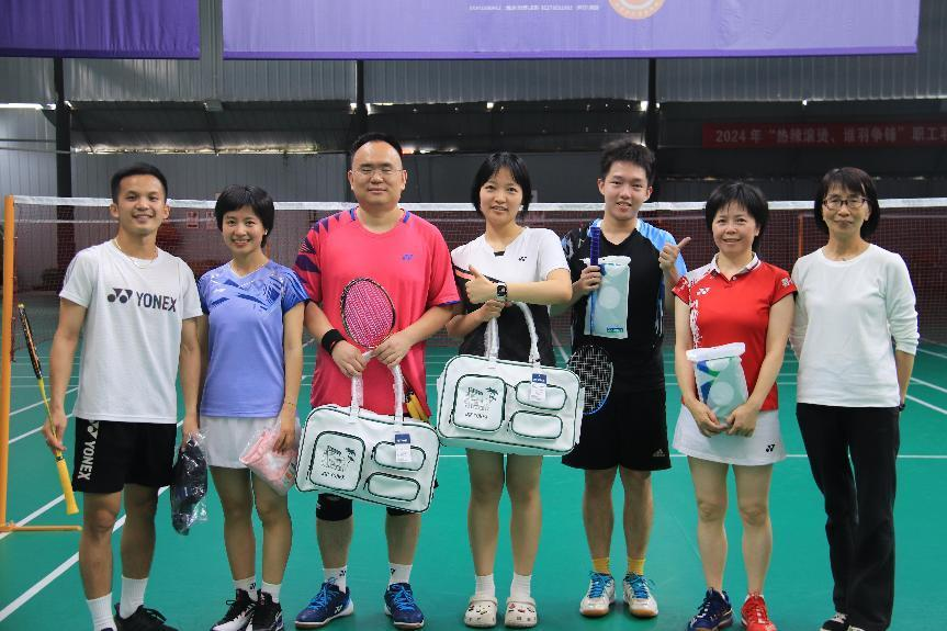 本次羽毛球比赛分为男双、女双、混双三个部分,趣味赛共有“精准圈圈乐”、“手拉手大作战”、“盲盒球拍战”和“篮网捕手”四项活动。