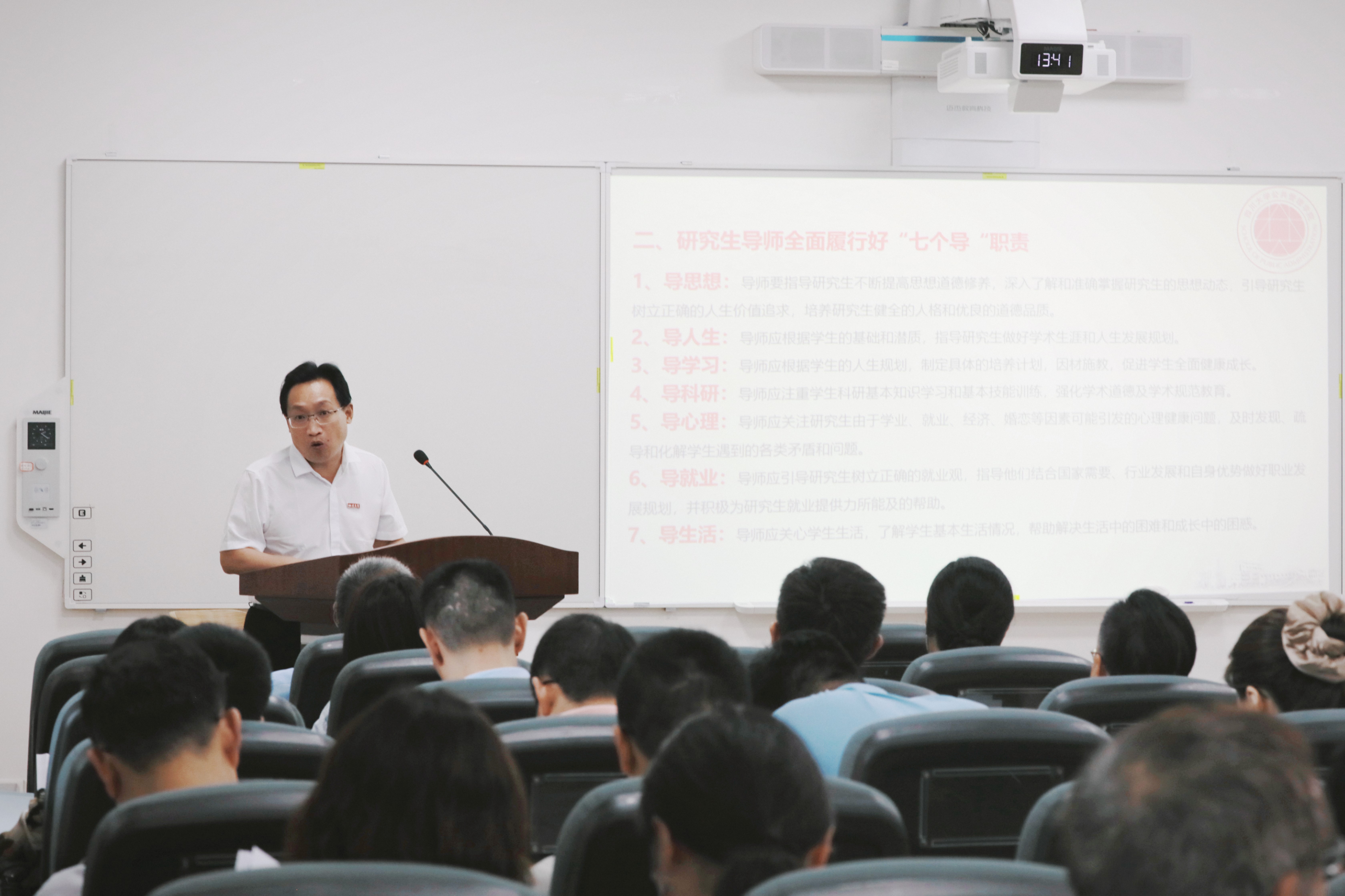 夏志强院长强调此次培训会的重要性。他指出,学院十分重视导师队伍建设,导师是研究生培养的关键力量。每一位导师都要牢记立德树人职责,坚守学术道德底线,提升学术指导水平,真正做到以文化人、以德育人。