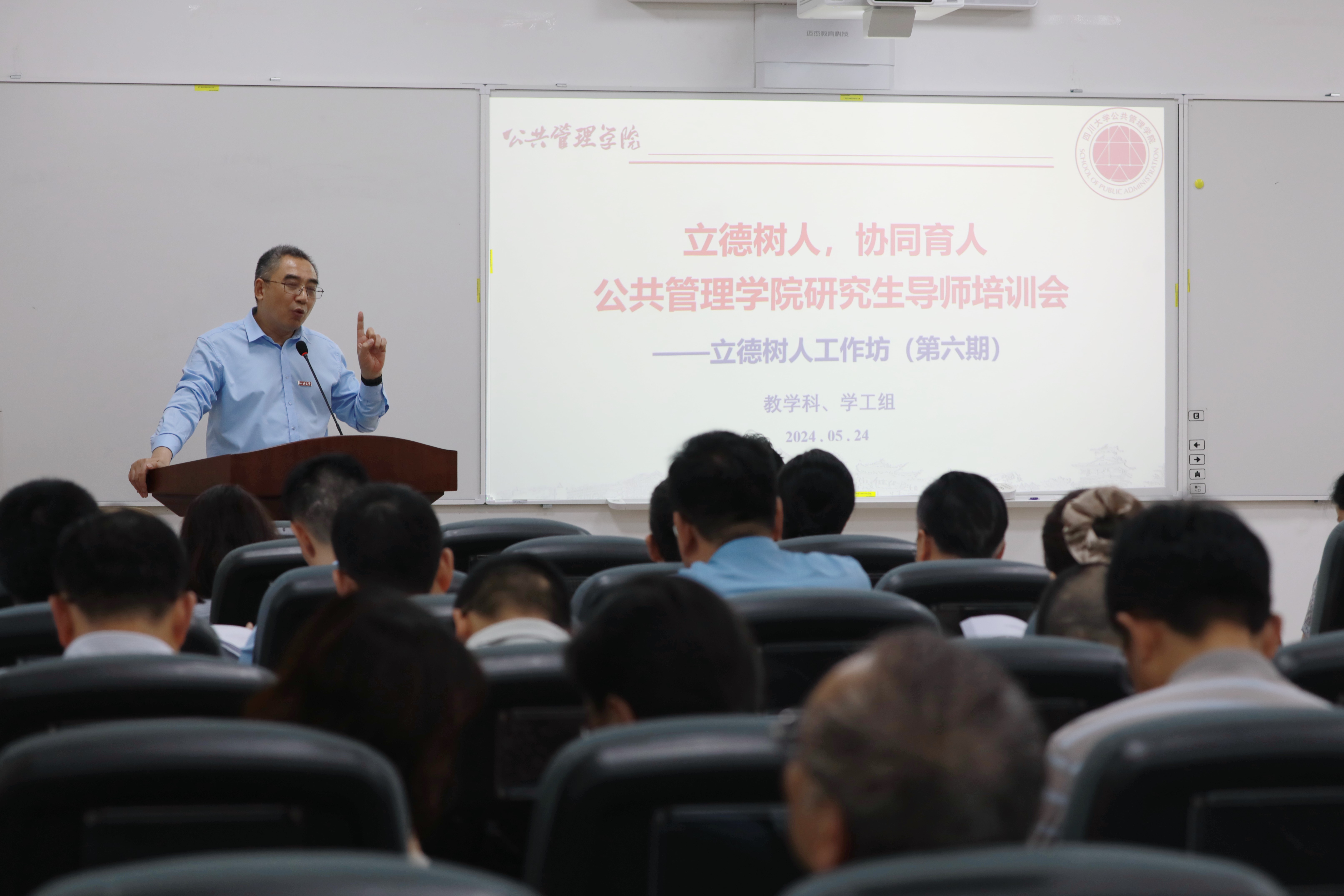 为深入贯彻落实习近平总书记对研究生教育工作的重要指示精神和学校“1+5”文件要求,进一步强化、规范导师育人职责,5月24日,学院在萃文楼105室举行“立德树人工作坊第6期”研究生导师培训会,并印发了导师手册。学院领导班子成员、研究生导师、教学科老师和部分辅导员参加培训,培训会由夏志强院长主持。
