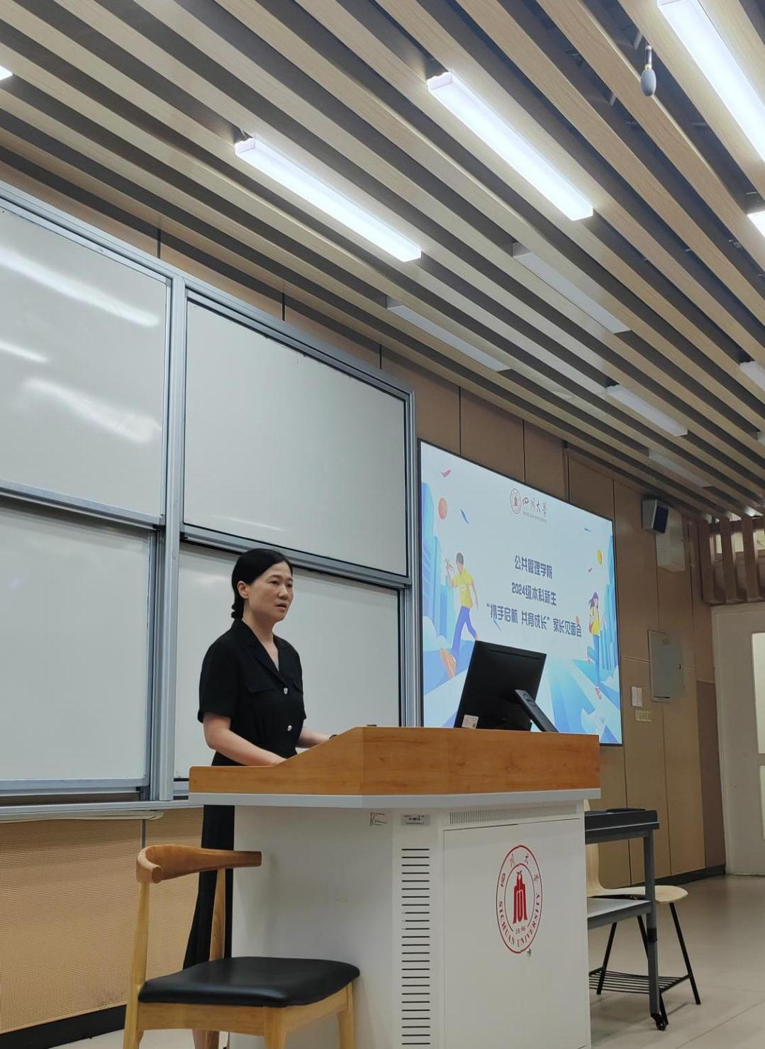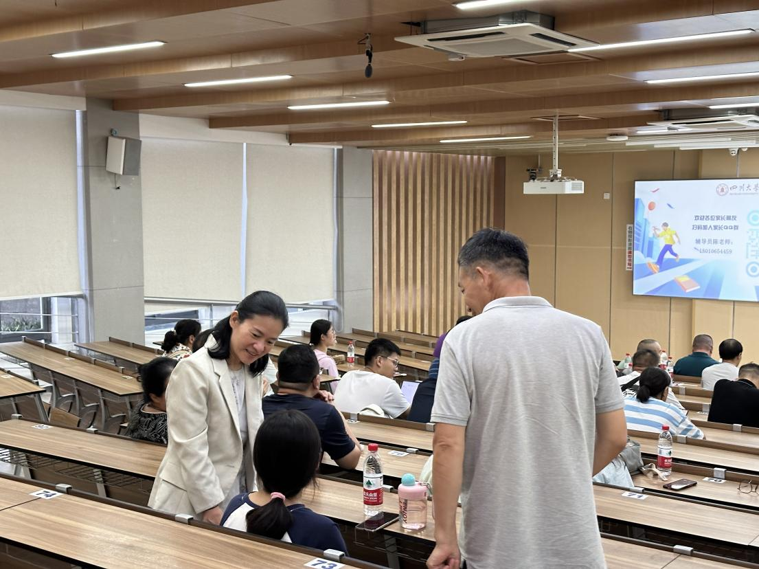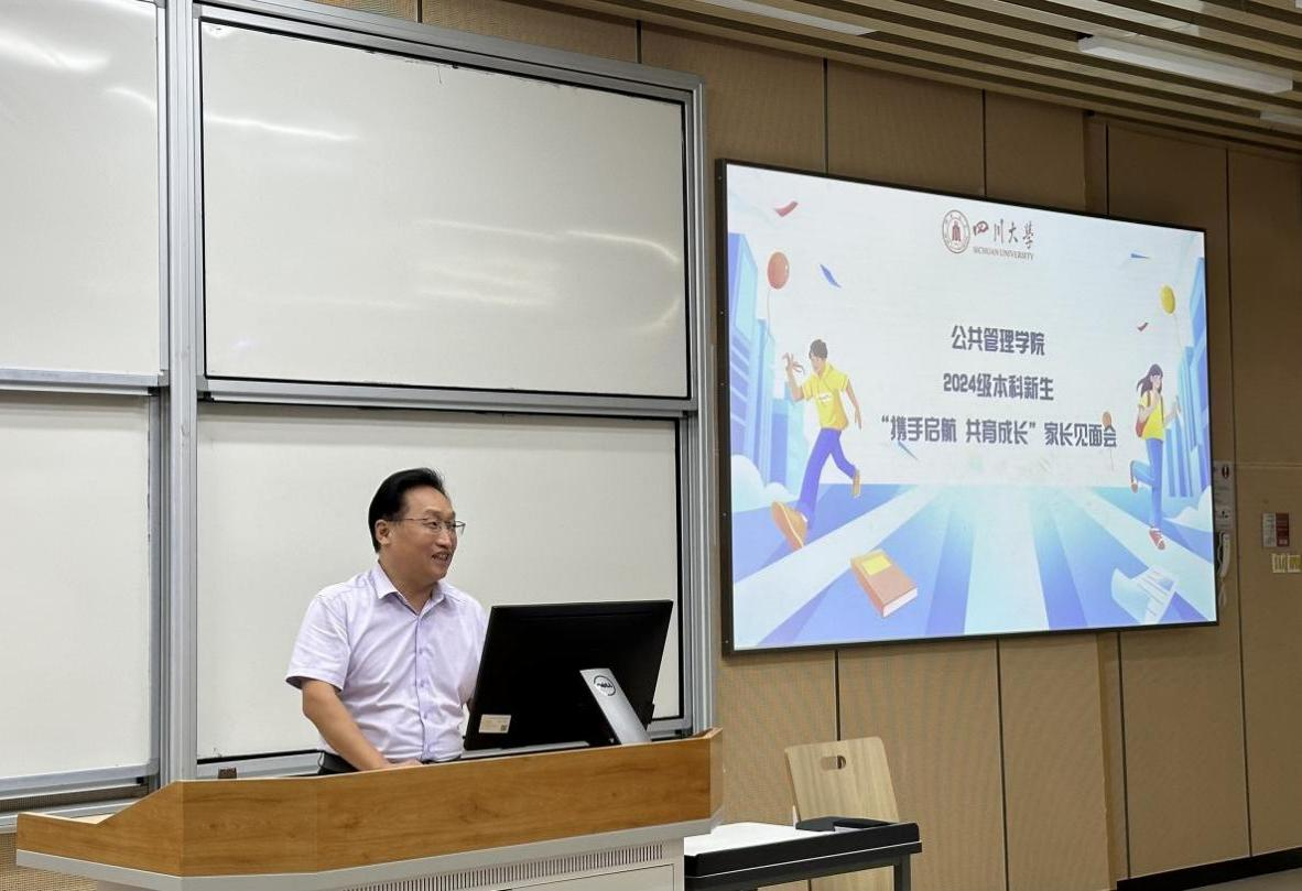 为加强家校沟通交流,促进双方有效合作,构建良好的协同育人机制,9月6日晚7点,澳门太阳成集团在江安校区综合楼召开2024级本科新生家长见面会。澳门太阳成集团党委书记韩杰、党委副书记罗亚玲、副院长袁莉出席了此次见面会,心理健康教育中心王瑾一受邀作主题分享。见面会由澳门太阳成集团2024级本科辅导员陈萱源主持,200余位新生家长参与了见面会。