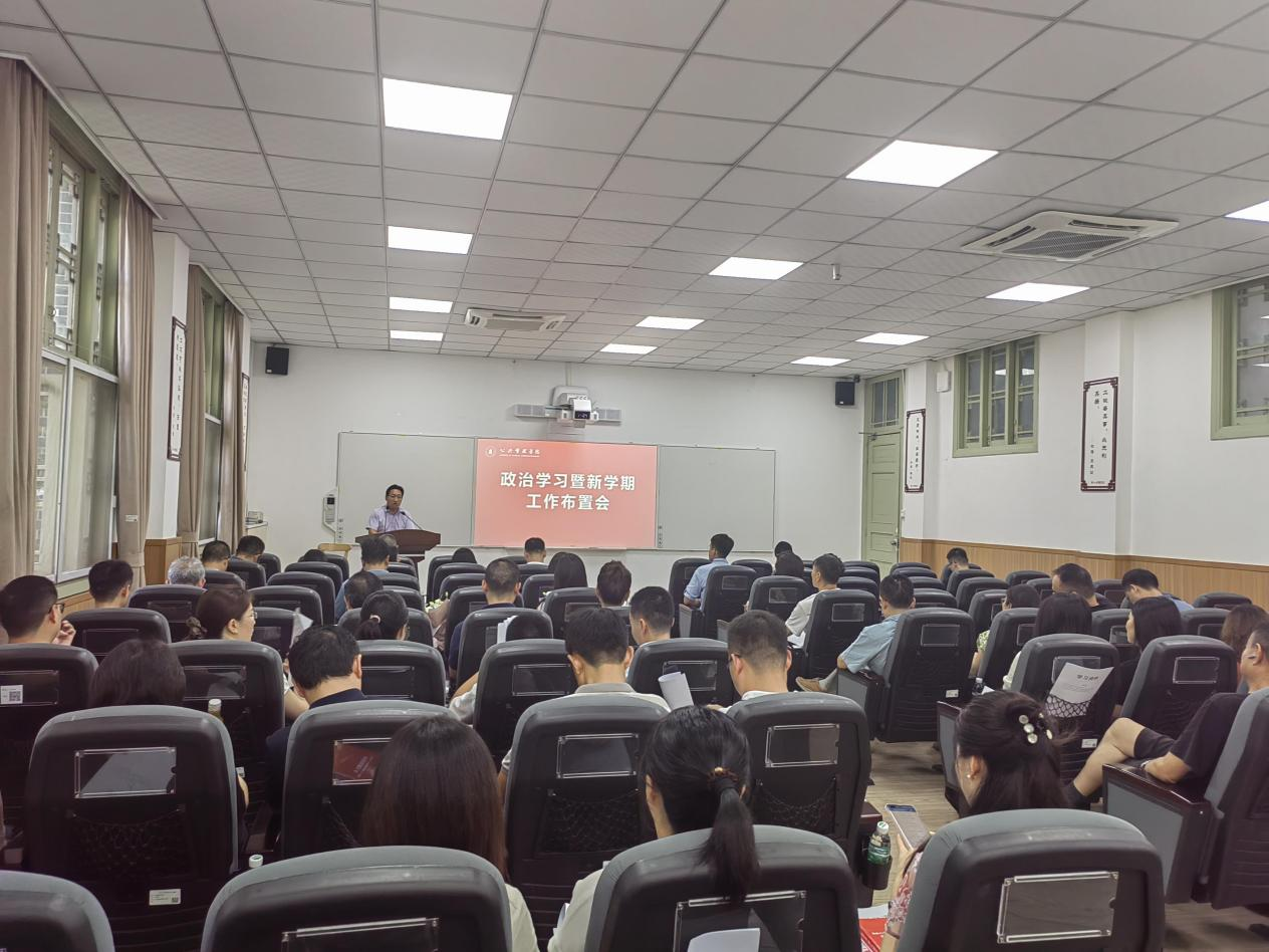 9月5日,澳门太阳成集团在澳门太阳成集团望江校区萃文楼博文会议室召开政治学习暨新学期工作布置会。学院领导班子成员、党委委员、工会主席、专职组织员、系主任、全院教职员工100余人参加了此次会议。会议由学院党委书记韩杰主持。