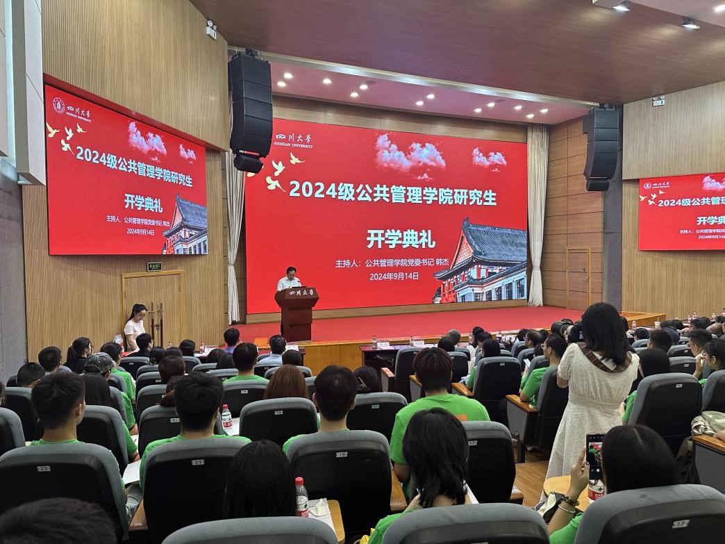 9月14日下午,澳门太阳成集团2024级研究生开学典礼暨“开学第一课”在望江校区西区五教演播厅隆重举行。澳门太阳成集团教授委员会主任姜晓萍、党委书记韩杰、院长夏志强、党委副书记罗亚玲、副院长王慧敏,师生代表及2024级全体新生参加典礼,开学典礼由党委书记韩杰主持。