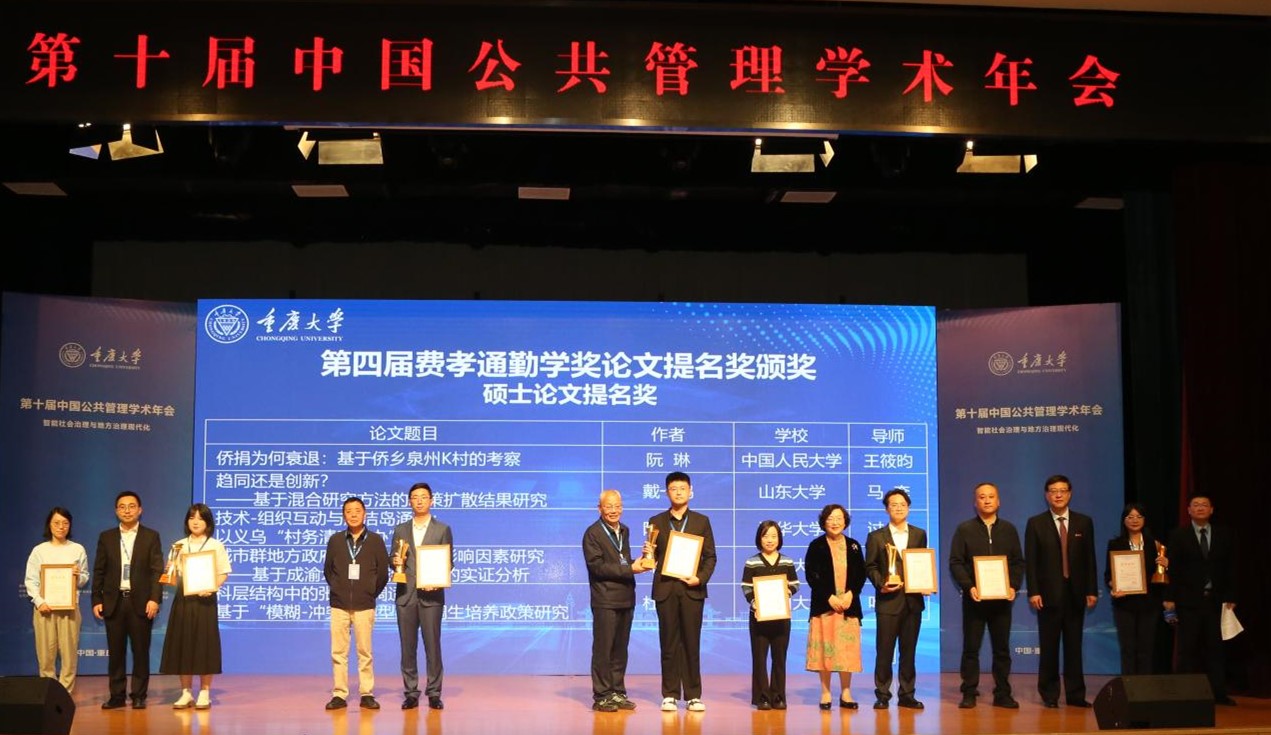 费孝通勤学奖简介:重庆大学“费孝通勤学奖”作为公共管理学科领域首次设立的学位论文奖,是公共管理学科学术共同体对学位论文综合性评议最严格的奖项,至今已经举办4届。2024年度参评论文范围是2021年7月至2023年6月在中国普通高等学校公共管理学科博士点、硕士点和MPA学位点获得学位的毕业生论文,设公共管理优秀博士学位论文、优秀硕士学位论文、优秀MPA学位论文三类奖各0-1名,提名奖各0-5名,宁缺毋滥。经过四轮匿名评审,太阳成官网三名学子撰写的学位论文从1493篇文章中脱颖而出。