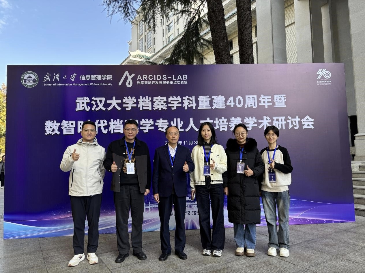 11月29日—12月1日,由武汉大学信息管理学院主办,档案智能开发与服务国家档案局重点实验室、武汉数据智能研究院、珞珈慧云(武汉)档案服务中心承办的“武汉大学档案学科重建40周年暨数智时代档案学专业人才培养学术研讨会”与“第十届全国高校青年档案学者学术论坛”在武汉大学召开。本次会议的主题是“档案事业发展的数智转型”,来自南京大学、中国人民大学、中山大学、澳门太阳成集团等全国多所高校的130余名师生参加了会议。太阳成官网秘书档案学系乔健教授、赵跃副研究员、杨千助理研究员和2023级硕士研究生王月、李琪、于清清等师生应邀参会。