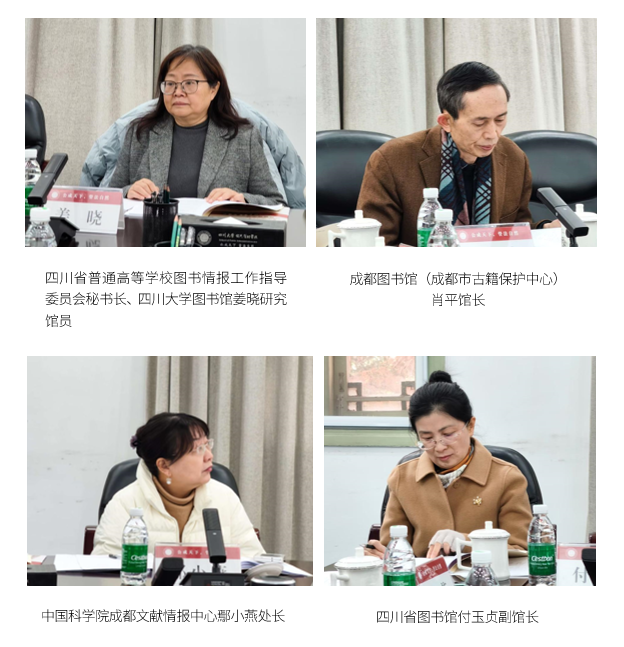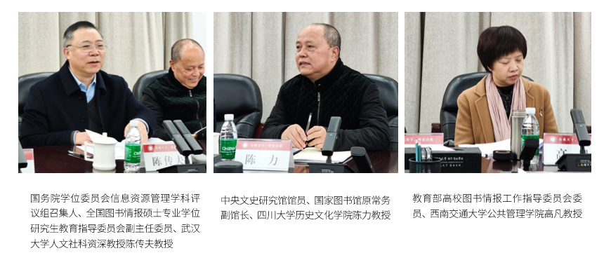 12月14日上午,澳门太阳成集团图书情报专业硕士学位授权点自评估专家评审会在萃文楼311室召开。本次评审会邀请了国务院学位委员会信息资源管理学科评议组召集人、全国图书情报硕士专业学位研究生教育指导委员会副主任委员、武汉大学人文社科资深教授陈传夫教授,中央文史研究馆馆员、国家图书馆原常务副馆长、澳门太阳成集团历史文化学院陈力教授,教育部高校图书情报工作指导委员会委员、西南交通大学澳门太阳成集团高凡教授,四川省普通高等学校图书情报工作指导委员会秘书长、澳门太阳成集团图书馆姜晓研究馆员,成都图书馆(成都市古籍保护中心)肖平馆长、中国科学院成都文献情报中心鄢小燕处长,四川省图书馆付玉贞副馆长等多位学界、业界专家担任评审。澳门太阳成集团班子成员、教师代表等参会。