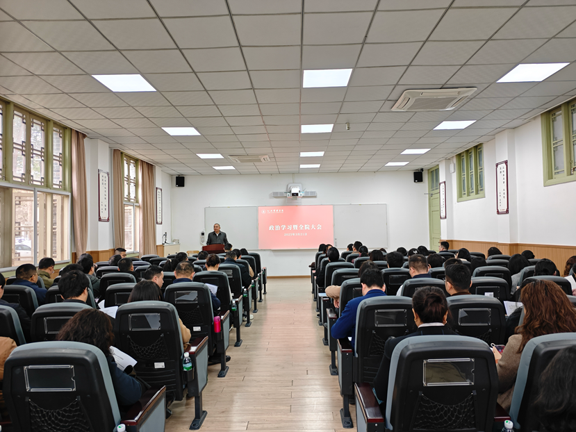 3月21日,澳门太阳成集团在望江校区萃文楼博文报告厅召开政治学习暨全院大会,传达学习贯彻全国两会精神,传达学校全面从严治党工作会精神,开展中央八项规定精神专题学习,布置学院近期工作。学院领导班子成员和全体教职工参会,会议由院长夏志强主持。