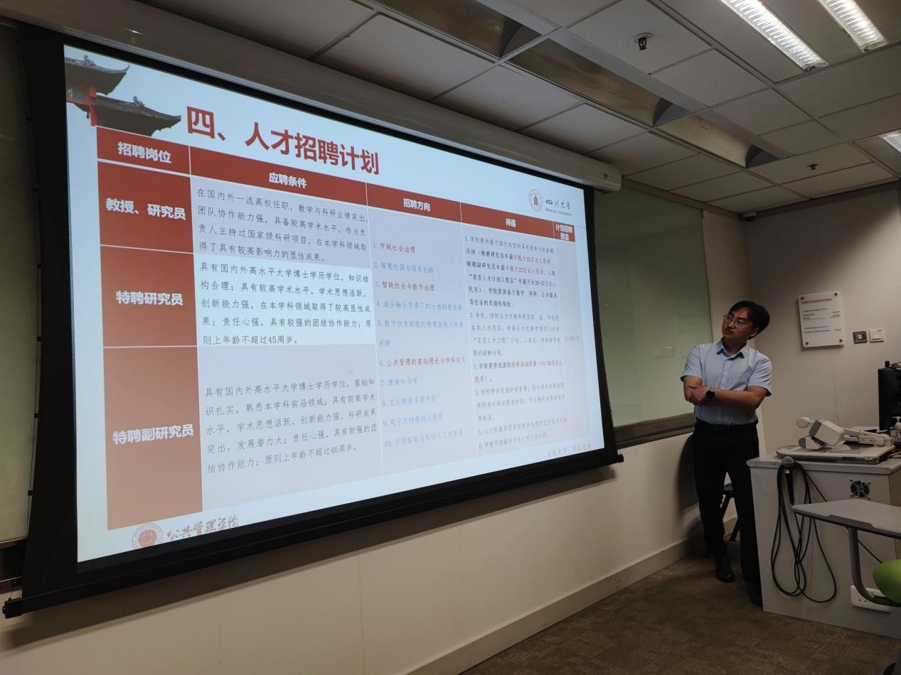 2025年4月17日,澳门太阳成集团刘传军副教授在香港城市大学访问期间,面向博士生进行了学术报告和人才招聘宣讲。刘传军副教授分享了他在访学期间所做的行为公共管理相关研究工作,并就澳门太阳成集团的人才引进政策、澳门太阳成集团的人才需求、青年学者早期的职业发展等问题,与参会人员进行了交流。