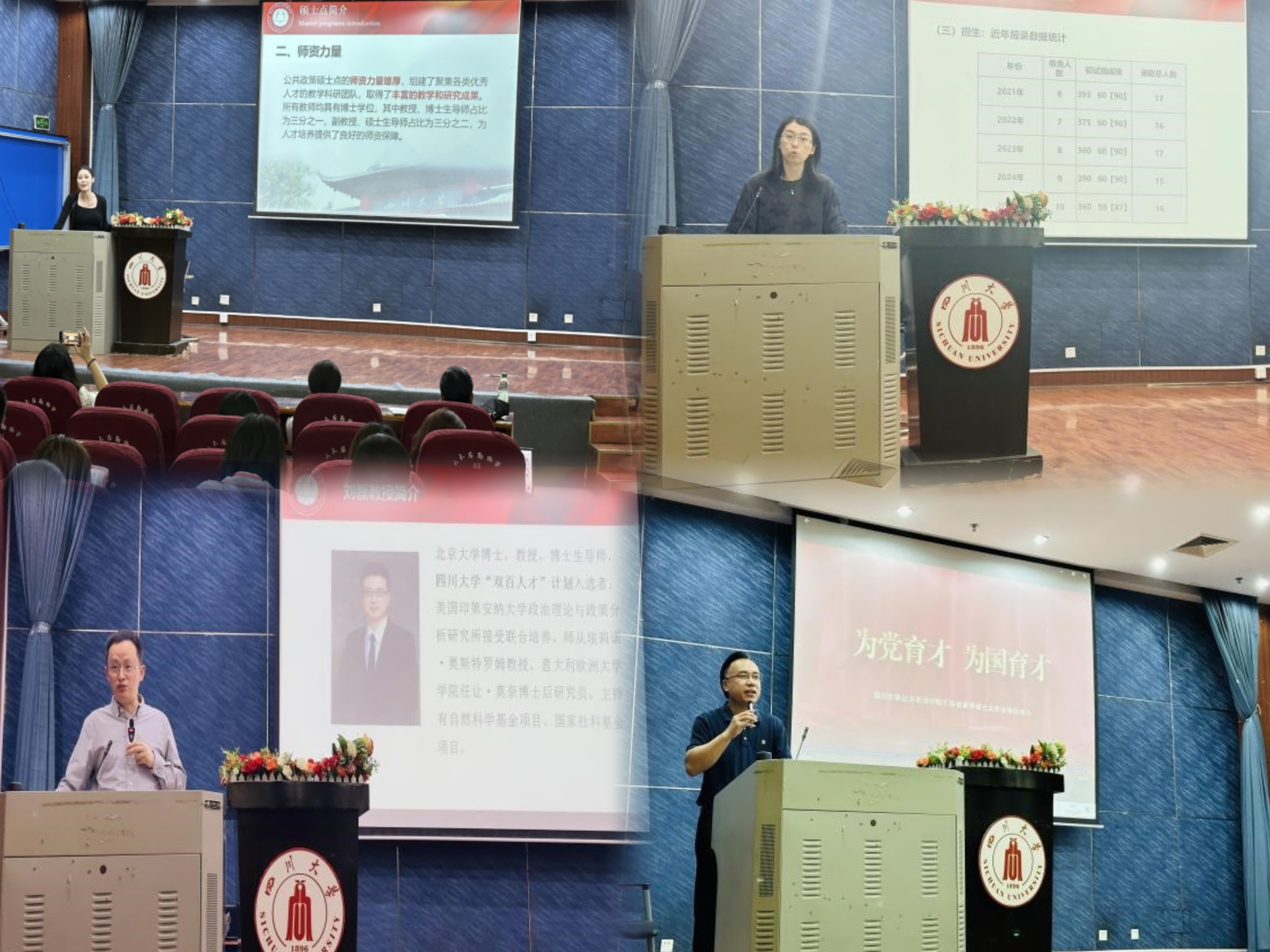 随后,公共政策曾路遥副教授、社会保障张浩淼教授、行政管理李强彬教授、干部教育学郭金云教授、社会学徐婷副教授、信息资源管理王萍教授、国家治理刘锐副教授分别通过视频或PPT从专业方向、课程设置、导师队伍、就业前景等对各学科的鲜明特色和培养优势进行了全面介绍,并对澳门太阳成集团本科生继续留本院深造表示诚挚的欢迎。